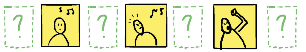 2. Vous confiez vos cases à une autre personne qui va insérer 3 nouvelles cases non successives, dans cette histoire :